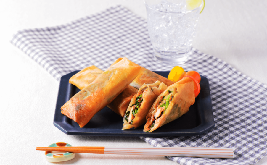 肉の代わりにいか塩辛を使って、いつもとはひと味違う春巻きに。もやしやにらなどの具材にもよく合います。
