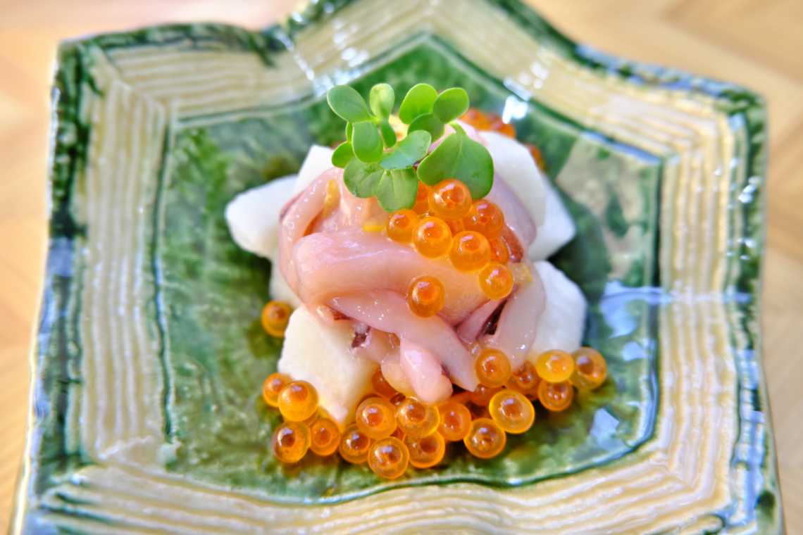 香り豊かなゆず風味いか塩辛に、イクラと長芋を和えました。ゆずのさっぱりとした風味と、長芋のシャキシャキ食感がおすすめの、彩り鮮やかでお手軽な一品です。